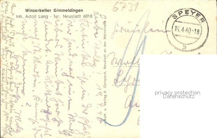 41793177 alte Postkarte Neustadt Weinstrasse Winzkeller Gimmeldingen postalisch gelaufen KatCode: 11110007316000