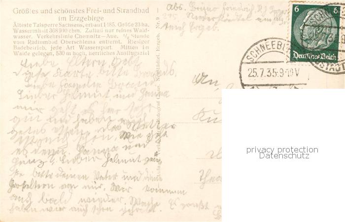 73802197 alte Postkarte Neustaedtel Sachsen Erzgebirge Strandbad Bergsee Filzteich postalisch gelaufen Erhaltung siehe scans [FriedD77] KatCode: 11110014191280