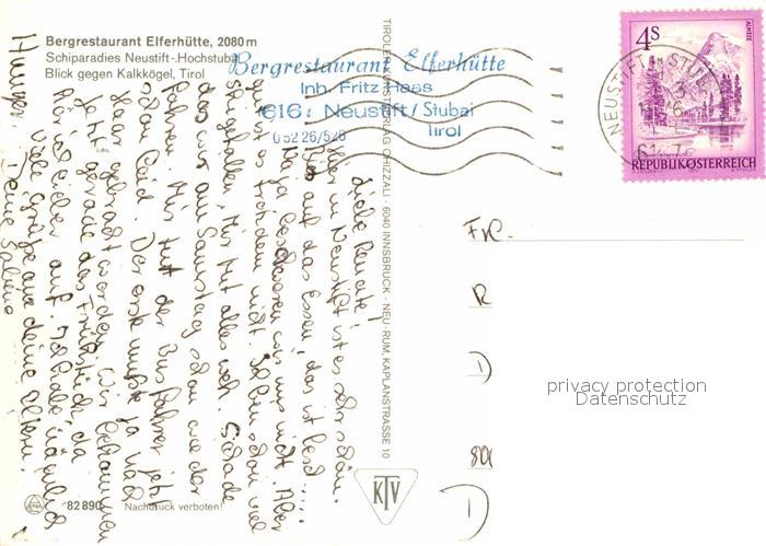 old postcard Neustift Brixen Suedtirol Bergrestaurant Elferhuette Skigebiet gegen Kakkoegel postalisch gelaufen Erhaltung siehe scans [LiesaD40]