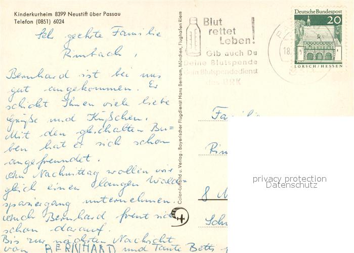 73701759 alte Postkarte Neustift Hauzenberg Kinderkurheim Fliegeraufnahme postalisch gelaufen Erhaltung siehe scans [WerneD78] KatCode: 11110009275126