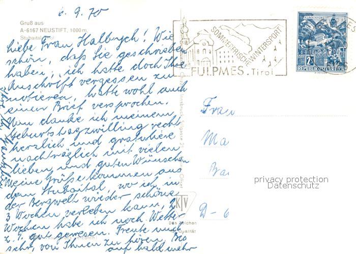 73156902 alte Postkarte Neustift Stubaital Tirol postalisch gelaufen Erhaltung siehe scans [LiesaD40] KatCode: 11390332070334