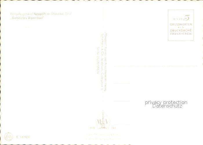 72494535 Neustift Stubaital Tirol Alpenbad postalisch nicht gelaufen Erhaltung siehe scans KatCode: 11390332070334