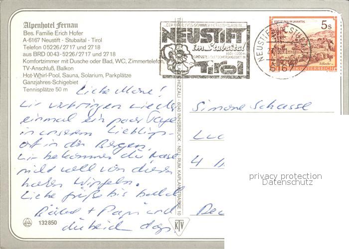 72292996 alte Postkarte Neustift Stubaital Tirol Alpenhotel Fernau postalisch gelaufen Erhaltung siehe scans KatCode: 11390332070334