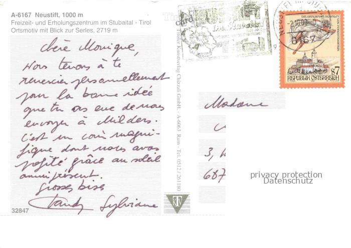 74025161 alte Postkarte Neustift Stubaital Tirol AT Ortsmotiv mit Blick zur Serles postalisch gelaufen Erhaltung siehe scans [FriedD77] KatCode: 11390332070334