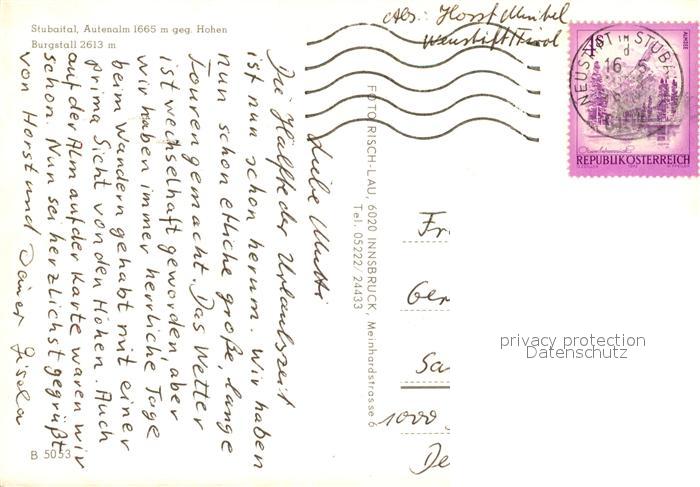 73518925 alte Postkarte Neustift Stubaital Tirol Autenalm gegen Hohen Burgstall Stubaier Alpen postalisch gelaufen Erhaltung siehe scans [FriedD77] KatCode: 11390332070334