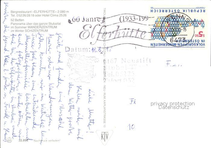 72375040 alte Postkarte Neustift Stubaital Tirol Bergrestaurant Elferhuette postalisch gelaufen Erhaltung siehe scans KatCode: 11390332070334