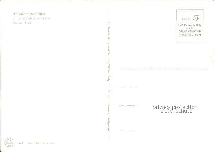 11931909 Neustift Stubaital Tirol Dresdner Huette mit Schaufelspitze postalisch nicht gelaufen Erhaltung siehe scans KatCode: 11390332070334