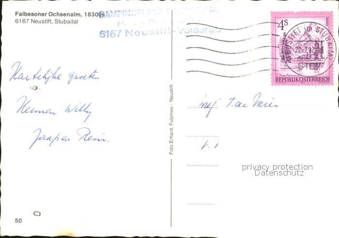 72420738 alte Postkarte Neustift Stubaital Tirol Falbesoner Ochsenalm postalisch gelaufen Erhaltung siehe scans KatCode: 11390332070334