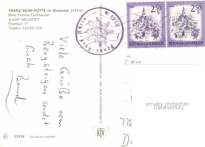 72720800 alte Postkarte Neustift Stubaital Tirol Franz-Senn-Huette Stubaital postalisch gelaufen Erhaltung siehe scans [LiesaD40] KatCode: 11390332070334
