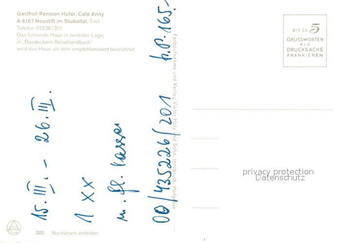 13101856 Neustift Stubaital Tirol Gasthof Anny postalisch nicht gelaufen Erhaltung siehe scans [NatalD47] KatCode: 11390332070334