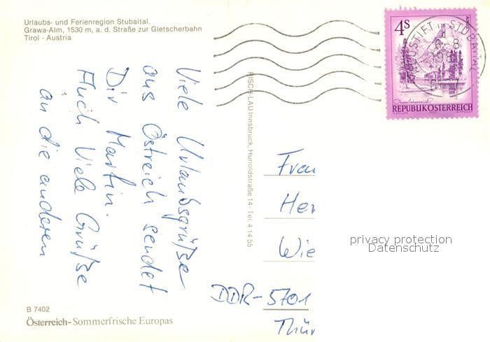 13233136 alte Postkarte Neustift Stubaital Tirol Grawa-Alm postalisch gelaufen Erhaltung siehe scans [NatalD47] KatCode: 11390332070334