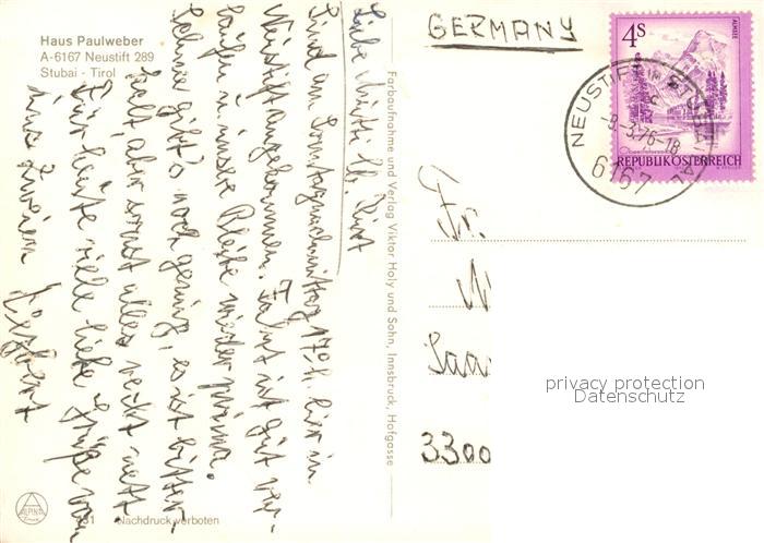 73174654 alte Postkarte Neustift Stubaital Tirol Haus Paulweber postalisch gelaufen Erhaltung siehe scans [PaolaD17] KatCode: 11390332070334