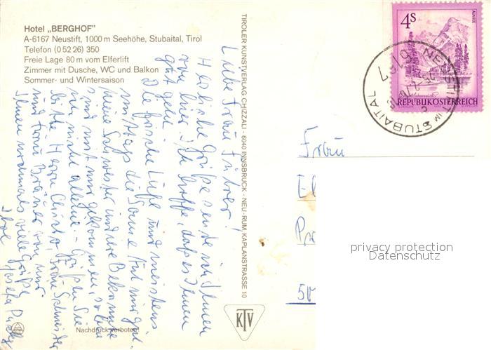 73588631 alte Postkarte Neustift Stubaital Tirol Hotel Berghof postalisch gelaufen Erhaltung siehe scans [PaolaD17] KatCode: 11390332070334