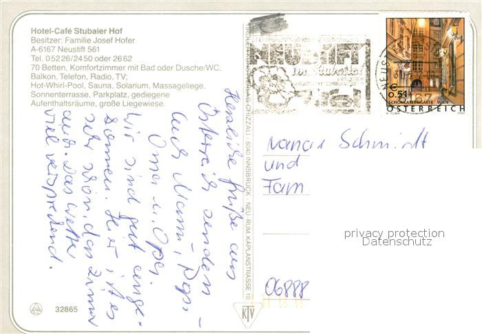 73286056 alte Postkarte Neustift Stubaital Tirol Hotel Cafe Stubaier Hof postalisch gelaufen Erhaltung siehe scans [LiesaD40] KatCode: 11390332070334