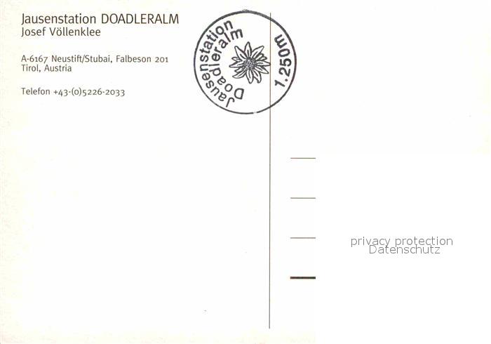 72672080 Neustift Stubaital Tirol Jausenstation Doadleralm postalisch nicht gelaufen Erhaltung siehe scans [WerneD78] KatCode: 11390332070334