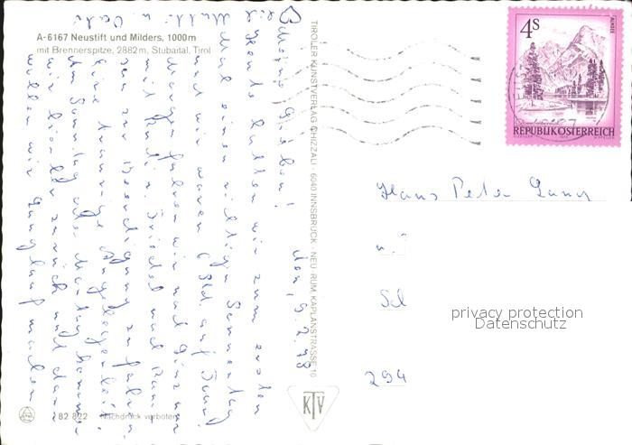 72438910 alte Postkarte Neustift Stubaital Tirol Milders und Brennerspitze postalisch gelaufen Erhaltung siehe scans KatCode: 11390332070334