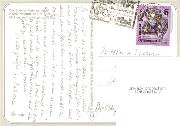 73244146 alte Postkarte Neustift Stubaital Tirol mit Brennerspitze postalisch gelaufen Erhaltung siehe scans [LiesaD40] KatCode: 11390332070334