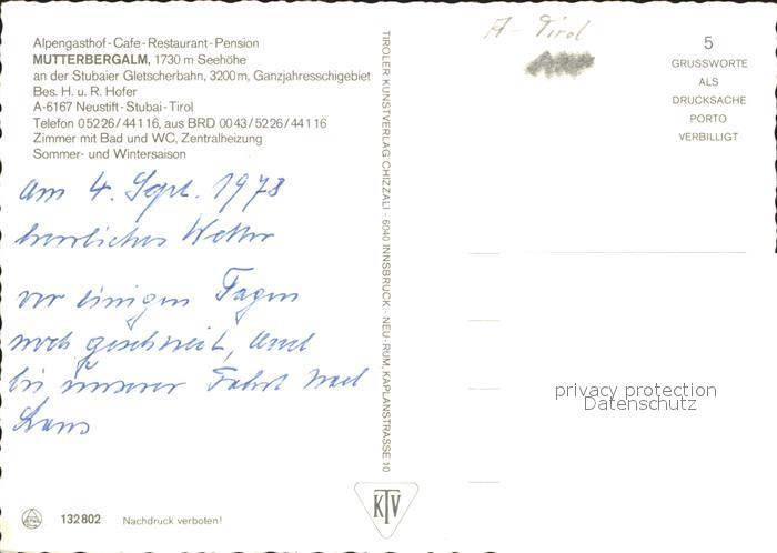 71812715 Neustift Stubaital Tirol Mutterbergalm Gastraum Seilbahn postalisch nicht gelaufen Erhaltung siehe scans KatCode: 11390332070334