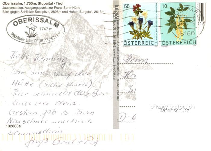 73082921 alte Postkarte Neustift Stubaital Tirol Oberissalm Jausenstation Kuehe Schlicker Seespitze Hoher Burgstall Stubaier Alpen postalisch gelaufen Erhaltung siehe scans [FriedD77] KatCode: 11390332070334