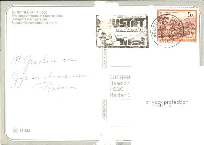 72092259 alte Postkarte Neustift Stubaital Tirol Ortsansicht postalisch gelaufen Erhaltung siehe scans KatCode: 11390332070334