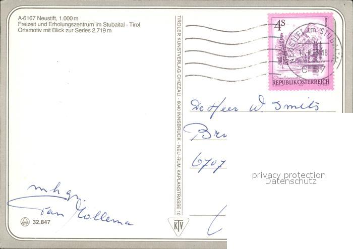 72092263 alte Postkarte Neustift Stubaital Tirol Ortsmotiv mit Blick zur Serles postalisch gelaufen Erhaltung siehe scans KatCode: 11390332070334