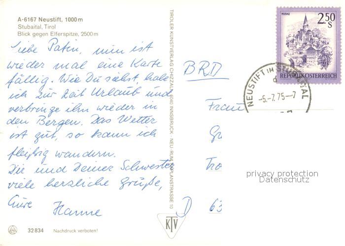 73645296 alte Postkarte Neustift Stubaital Tirol Panorama Blick gegen Elferspitze postalisch gelaufen Erhaltung siehe scans [FriedD77] KatCode: 11390332070334
