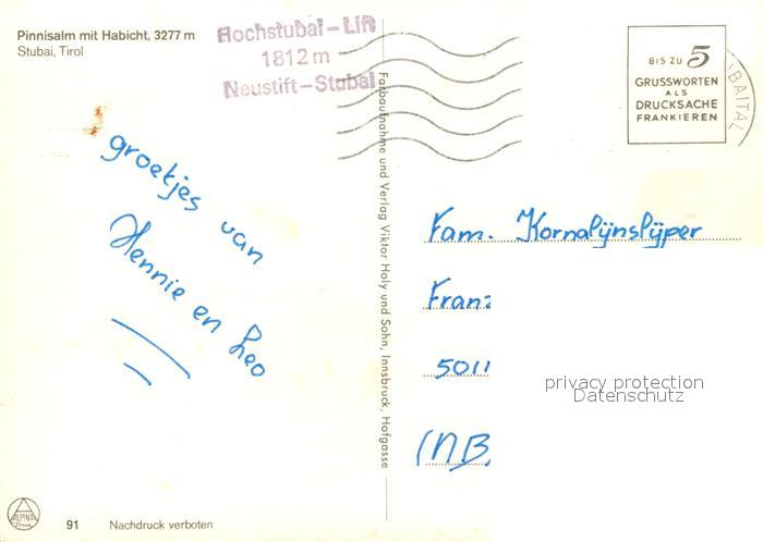 73230364 alte Postkarte Neustift Stubaital Tirol Pinnisalm mit Habicht Stubaier Alpen Almvieh Kuehe postalisch gelaufen Erhaltung siehe scans [FriedD77] KatCode: 11390332070334