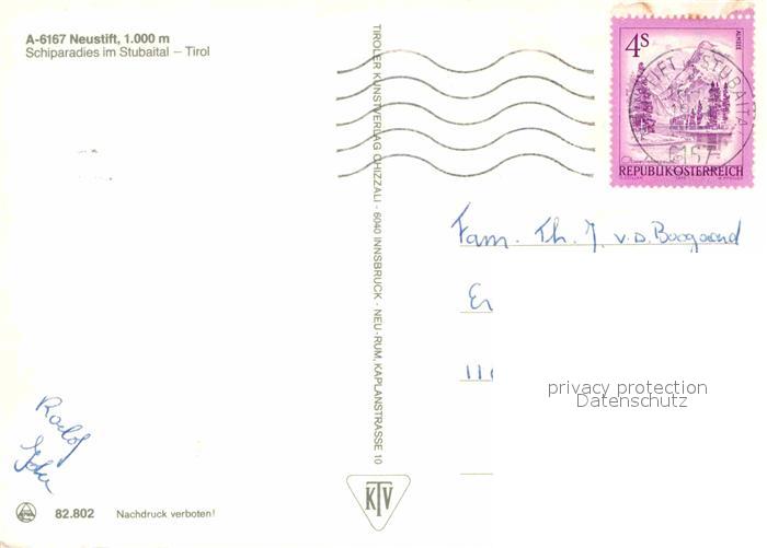 72856244 alte Postkarte Neustift Stubaital Tirol Ski Kirche postalisch gelaufen Erhaltung siehe scans [NatalD47] KatCode: 11390332070334