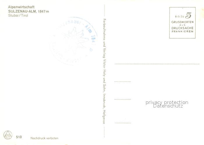 73086497 Neustift Stubaital Tirol Sulzenau-Alm postalisch nicht gelaufen Erhaltung siehe scans [PaolaD17] KatCode: 11390332070334