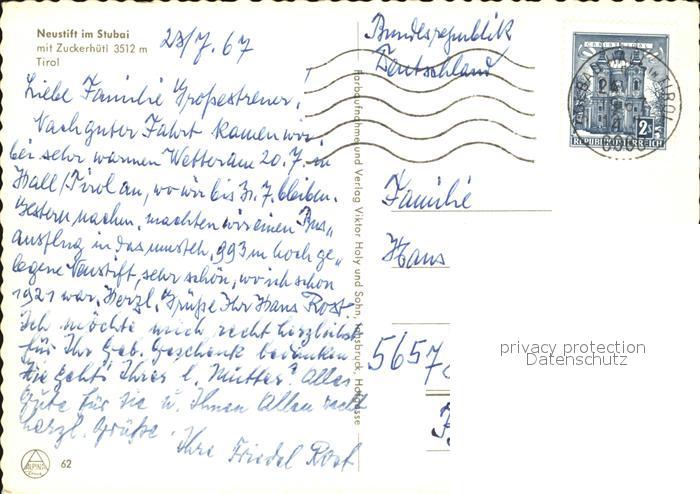 12394044 alte Postkarte Neustift Stubaital Tirol Zuckerhuetl postalisch gelaufen Erhaltung siehe scans KatCode: 11390332070334