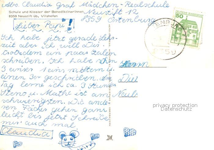 73164335 alte Postkarte Neustift Vilshofen Niederbayern Schule und Kloster der Benediktinerinnen Fliegeraufnahme postalisch gelaufen Erhaltung siehe scans [WerneD78] KatCode: 11110009275138