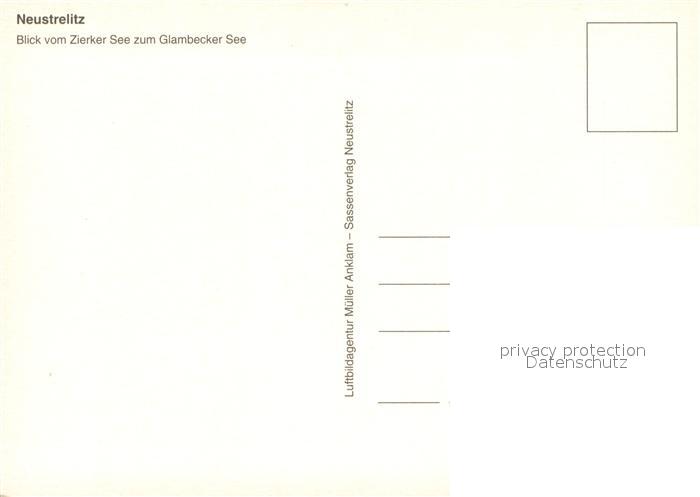 73644069 Neustrelitz Fliegeraufnahme mit Zierker See und Glambecker See postalisch nicht gelaufen Erhaltung siehe scans [WerneD78] KatCode: 11110013055050