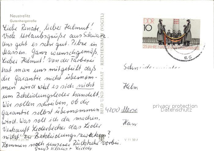72182399 alte Postkarte Neustrelitz Gutenbergstrasse postalisch gelaufen Erhaltung siehe scans KatCode: 11110013055050