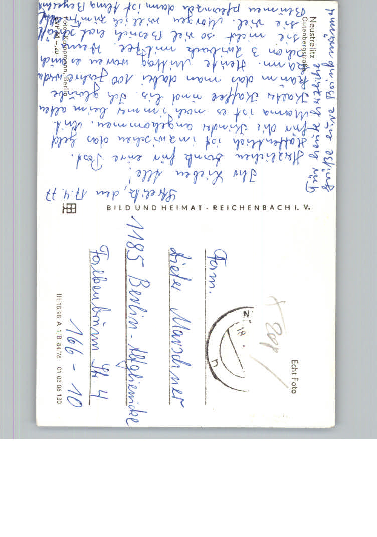 31164415 Neustrelitz Gutenbergstrasse postalisch nicht gelaufen KatCode: 11110013055050