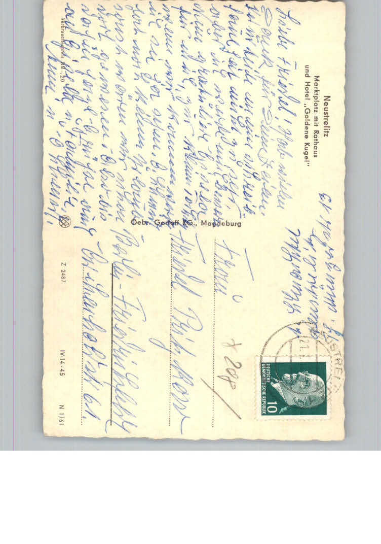 31164502 Neustrelitz Hotel Goldene Kugel postalisch nicht gelaufen KatCode: 11110013055050