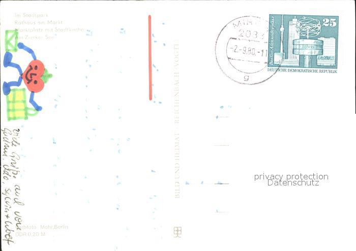 72370044 alte Postkarte Neustrelitz Im Stadtpark Rathaus am Markt Zierker See postalisch gelaufen Erhaltung siehe scans KatCode: 11110013055050