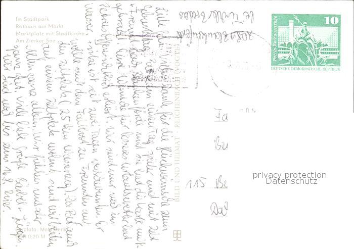 72369162 alte Postkarte Neustrelitz Im Stadtpark Rathaus und Markt Marktplatz und Stadtkirche postalisch gelaufen Erhaltung siehe scans KatCode: 11110013055050