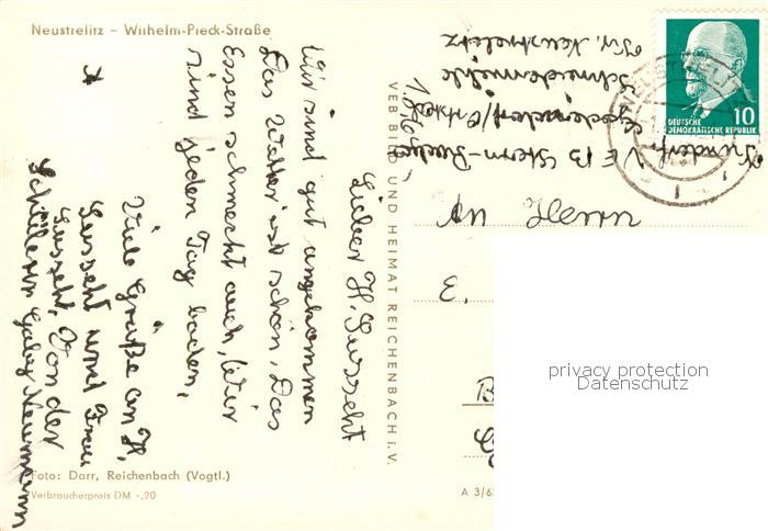73798965 Neustrelitz Mecklenburg-Vorpommern Wilhelm Pieck Strasse postalisch gelaufen Erhaltung siehe scans [FriedD77] alte Postkarte Frie Katcode 11110013055050