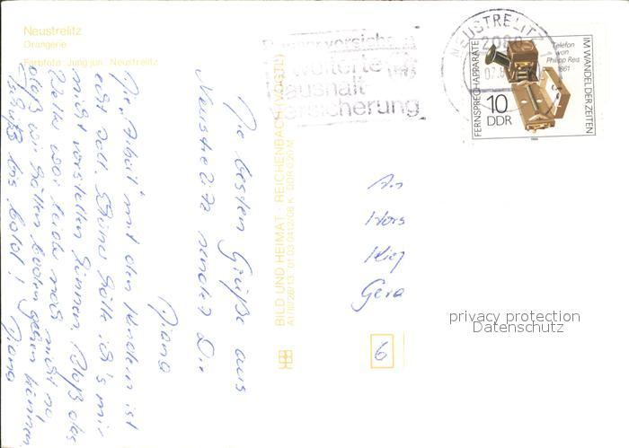 72331376 alte Postkarte Neustrelitz Orangerie postalisch gelaufen Erhaltung siehe scans KatCode: 11110013055050