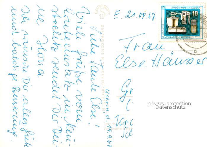 73034444 alte Postkarte Neustrelitz Panorama Marktplatz Haus der Werktaetigen Stadtpark Friedrich Wolf Theater postalisch gelaufen Erhaltung siehe scans [WerneD78] KatCode: 11110013055050