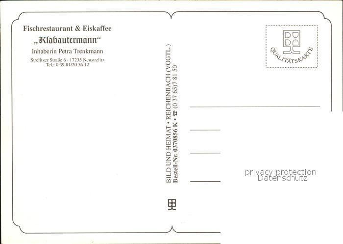 72610644 Neustrelitz Restaurant EisCafe Klabautermann postalisch nicht gelaufen Erhaltung siehe scans [AndreD76] KatCode: 11110013055050