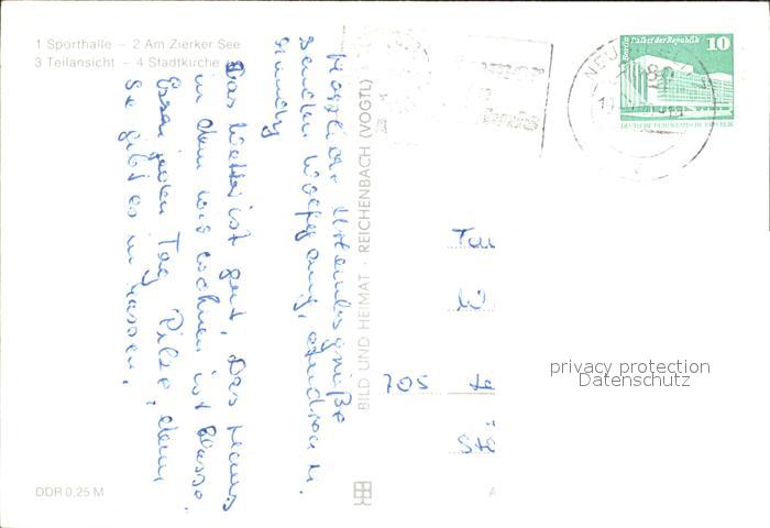 72357872 alte Postkarte Neustrelitz Sporthalle Zierker See Teilansicht Stadtkirche postalisch gelaufen Erhaltung siehe scans KatCode: 11110013055050