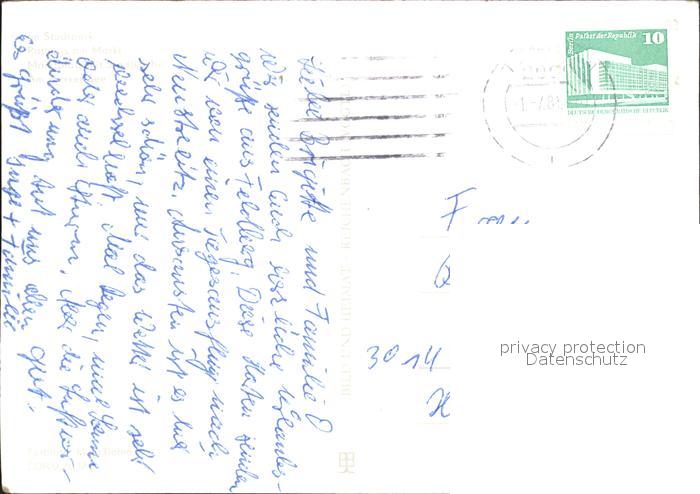 72058175 alte Postkarte Neustrelitz Stadtpark Rathaus Marktplatz Stadtkirche Zierker See postalisch gelaufen Erhaltung siehe scans KatCode: 11110013055050