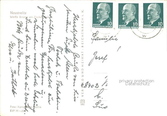 72168507 alte Postkarte Neustrelitz Weisse Bruecke am Zierker See postalisch gelaufen Erhaltung siehe scans KatCode: 11110013055050