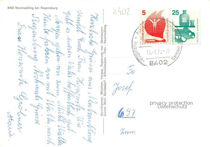 74035421 alte Postkarte Neutraubling Fliegeraufnahme postalisch gelaufen Erhaltung siehe scans [WerneD78] KatCode: 11110009375174