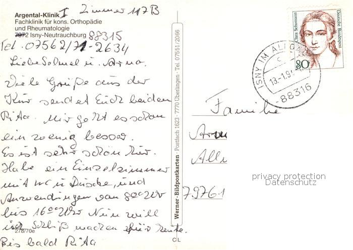 72950369 alte Postkarte Neutrauchburg Argental-Klinik postalisch gelaufen Erhaltung siehe scans [NatalD47] KatCode: 11110008436049
