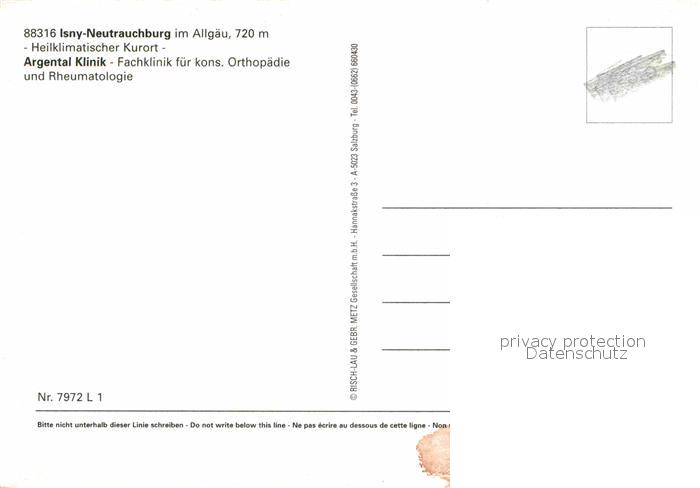 72790577 Neutrauchburg Argental-Klinik postalisch nicht gelaufen Erhaltung siehe scans [LiesaD40] KatCode: 11110008436049