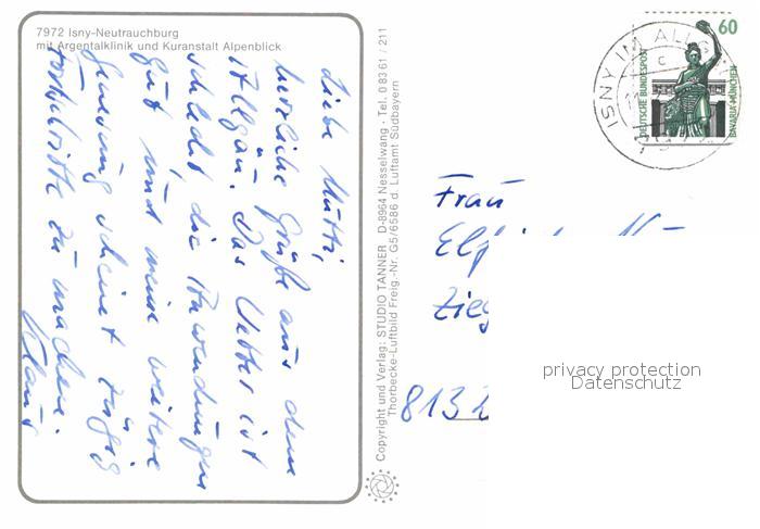72843922 alte Postkarte Neutrauchburg Argentalklinik Kuranstalt Alpenblick postalisch gelaufen Erhaltung siehe scans [NatalD47] KatCode: 11110008436049