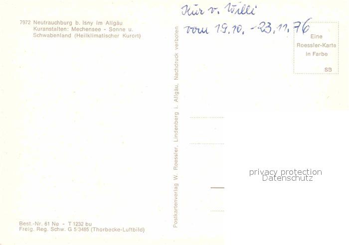 72725655 Neutrauchburg Fliegeraufnahme Kuranstalten Mechensee postalisch nicht gelaufen Erhaltung siehe scans [LiesaD40] KatCode: 11110008436049