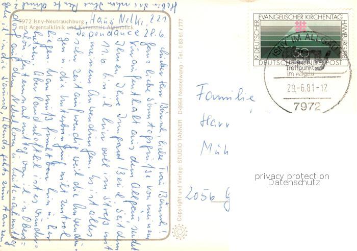 73744776 alte Postkarte Neutrauchburg Fliegeraufnahme mit Argentalklinik und Kuranstalt Alpenblick postalisch gelaufen Erhaltung siehe scans [FriedD77] KatCode: 11110008436049